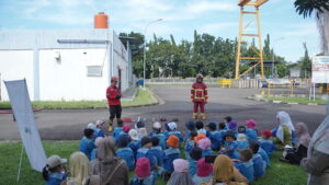Turut hadir dalam kegiatan tersebut perwakilan manajemen TL K3 dan Keamanan, Bapak Nurhapidin, Kepala Sekolah TK STAR Ibu Asmina, S.Pd, serta para guru pendamping.